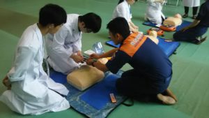 今年は、お薬相談、調剤体験(分包機、軟膏製剤)、薬物乱用防止活動、健康食品、肌チェックという内容で実施しました。